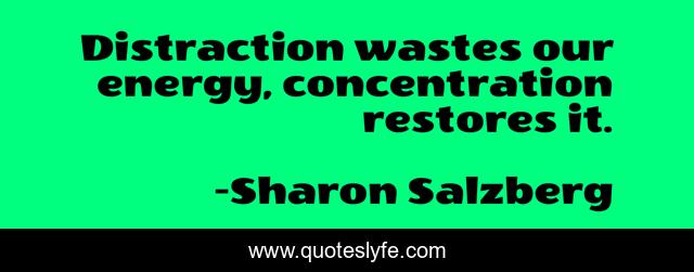 "Sharon Salzberg Quotes." Quoteslyfe.com, 2025. Mon. 08 Dec. 2025. <https://www.quoteslyfe.com/quote/Distraction-wastes-our-energy-concentration-restores-it-135367>.