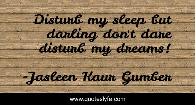 "Jasleen Kaur Gumber Quotes." Quoteslyfe.com, 2025. Fri. 05 Dec. 2025. <https://www.quoteslyfe.com/quote/Disturb-my-sleep-but-darling-don-t-53768>.