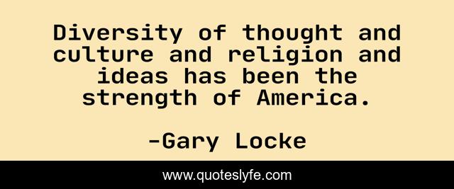 This page presents the quote "Diversity of thought and culture and religion and ideas has been the strength of America.". Author of this quote is Gary Locke. This quote is about culture, diversity, religion,.