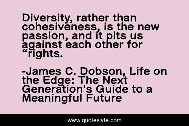 "James C. Dobson, Life on the Edge: The Next Generation's Guide to a Meaningful Future Quotes." Quoteslyfe.com, 2025. Fri. 05 Dec. 2025. <https://www.quoteslyfe.com/quote/Diversity-rather-than-cohesiveness-is-the-new-92524>.