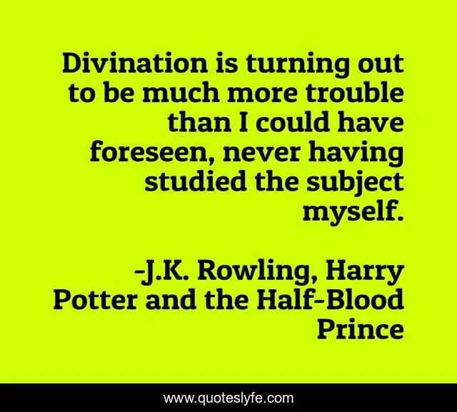"J.K. Rowling, Harry Potter and the Half-Blood Prince Quotes." Quoteslyfe.com, 2025. Sun. 07 Dec. 2025. <https://www.quoteslyfe.com/quote/Divination-is-turning-out-to-be-much-41000>.