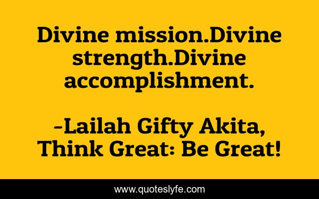 "Lailah Gifty Akita, Think Great: Be Great! Quotes." Quoteslyfe.com, 2025. Fri. 05 Dec. 2025. <https://www.quoteslyfe.com/quote/Divine-mission-Divine-strength-Divine-accomplishment-92767>.