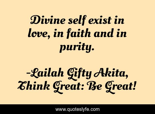 "Lailah Gifty Akita, Think Great: Be Great! Quotes." Quoteslyfe.com, 2025. Sat. 06 Dec. 2025. <https://www.quoteslyfe.com/quote/Divine-self-exist-in-love-in-faith-77324>.