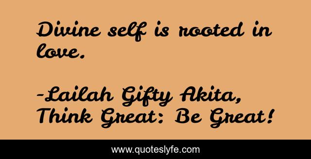 "Lailah Gifty Akita, Think Great: Be Great! Quotes." Quoteslyfe.com, 2025. Mon. 08 Dec. 2025. <https://www.quoteslyfe.com/quote/Divine-self-is-rooted-in-love-140413>.