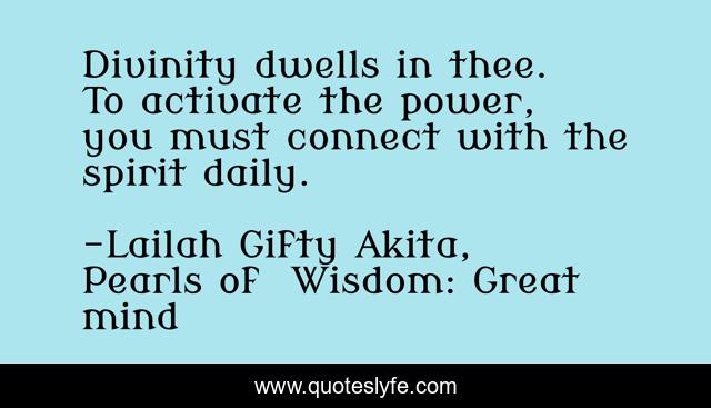 "Lailah Gifty Akita, Pearls of Wisdom: Great mind Quotes." Quoteslyfe.com, 2025. Fri. 05 Dec. 2025. <https://www.quoteslyfe.com/quote/Divinity-dwells-in-thee-To-activate-the-85291>.