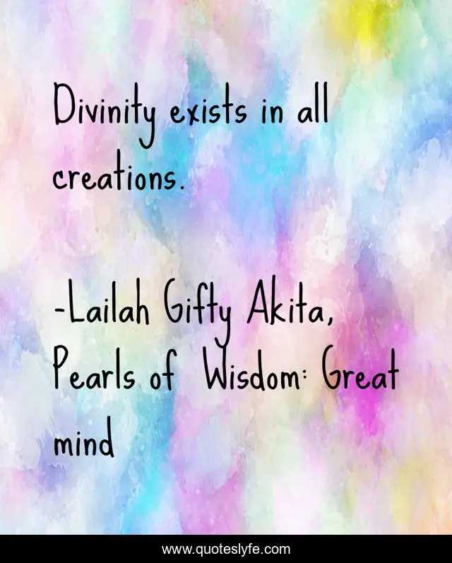 "Lailah Gifty Akita, Pearls of Wisdom: Great mind Quotes." Quoteslyfe.com, 2025. Fri. 05 Dec. 2025. <https://www.quoteslyfe.com/quote/Divinity-exists-in-all-creations-124037>.