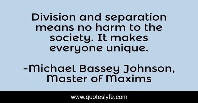 "Michael Bassey Johnson, Master of Maxims Quotes." Quoteslyfe.com, 2025. Fri. 05 Dec. 2025. <https://www.quoteslyfe.com/quote/Division-and-separation-means-no-harm-to-52996>.