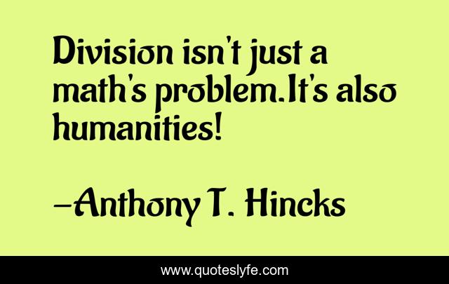 This page presents the quote "Division isn't just a math's problem.It's also humanities!". Author of this quote is Anthony T. Hincks. This quote is about division, humanities, philosophy, maths, problem, math, man,.
