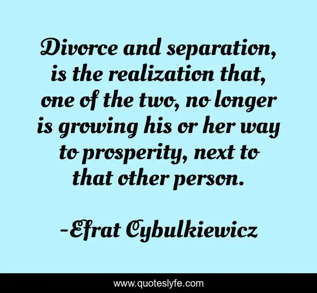 "Efrat Cybulkiewicz Quotes." Quoteslyfe.com, 2025. Fri. 05 Dec. 2025. <https://www.quoteslyfe.com/quote/Divorce-and-separation-is-the-realization-that-76902>.