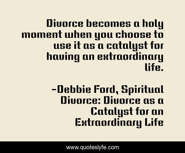 "Debbie Ford, Spiritual Divorce: Divorce as a Catalyst for an Extraordinary Life Quotes." Quoteslyfe.com, 2025. Sat. 06 Dec. 2025. <https://www.quoteslyfe.com/quote/Divorce-becomes-a-holy-moment-when-you-231752>.