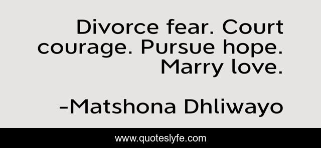 "Matshona Dhliwayo Quotes." Quoteslyfe.com, 2025. Mon. 08 Dec. 2025. <https://www.quoteslyfe.com/quote/Divorce-fear-Court-courage-Pursue-hope-Marry-48597>.