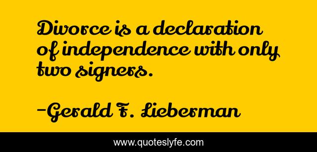 This page presents the quote "Divorce is a declaration of independence with only two signers.". Author of this quote is Gerald F. Lieberman. This quote is about divorce, two, declaration,.