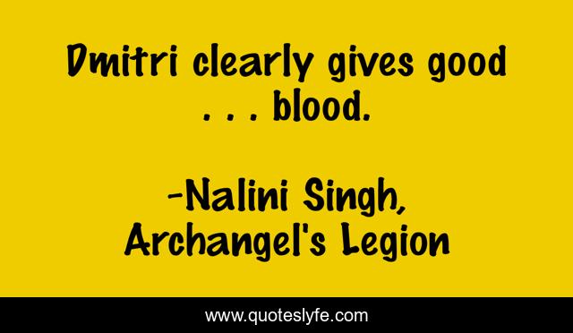 "Nalini Singh, Archangel's Legion Quotes." Quoteslyfe.com, 2025. Tue. 09 Dec. 2025. <https://www.quoteslyfe.com/quote/Dmitri-clearly-gives-good-blood-225099>.