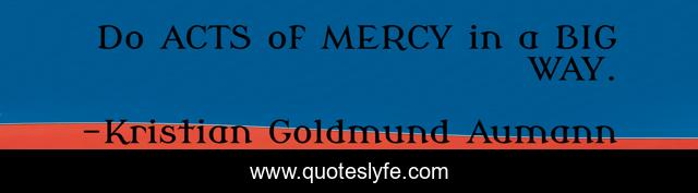 This page presents the quote "Do ACTS of MERCY in a BIG WAY.". Author of this quote is Kristian Goldmund Aumann. .