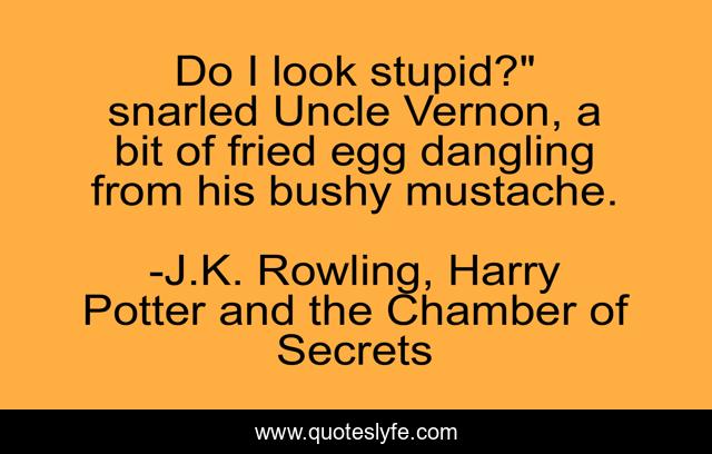 This page presents the quote "Do I look stupid?" snarled Uncle Vernon, a bit of fried egg dangling from his bushy mustache.". Author of this quote is J.K. Rowling, Harry Potter and the Chamber of Secrets. .