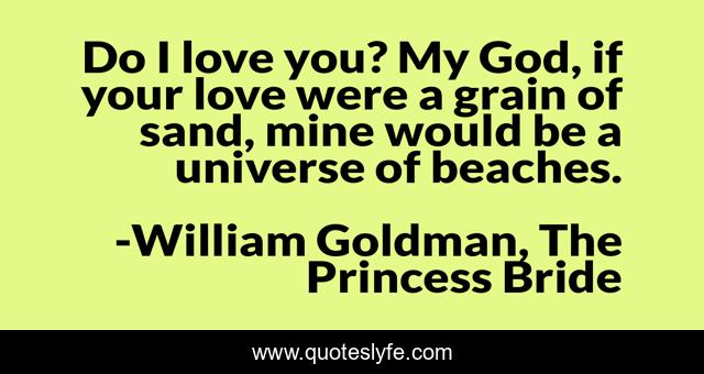 This page presents the quote "Do I love you? My God, if your love were a grain of sand, mine would be a universe of beaches.". Author of this quote is William Goldman, The Princess Bride. This quote is about ardor, adoration, love, affection,.