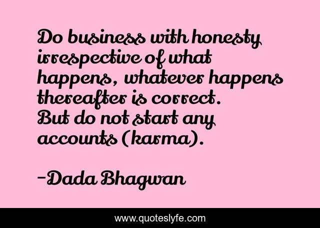 This page presents the quote "Do business with honesty irrespective of what happens, whatever happens thereafter is correct. But do not start any accounts (karma).". Author of this quote is Dada Bhagwan. This quote is about spiritual, honesty, business, karmic-account, spirituality, karma, honesty-integrity-relationship,.