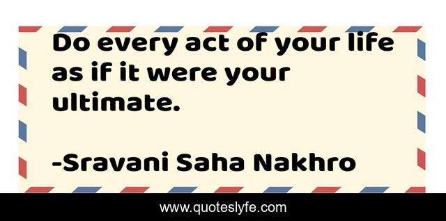 This page presents the quote "Do every act of your life as if it were your ultimate.". Author of this quote is Sravani Saha Nakhro. .