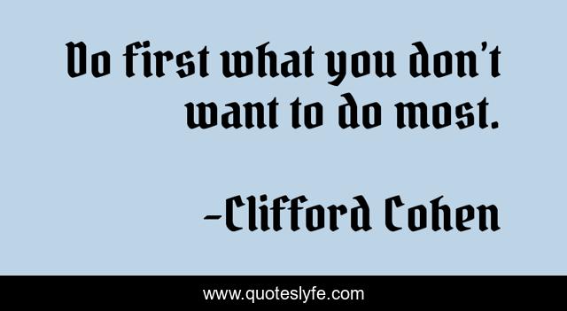 This page presents the quote "Do first what you don’t want to do most.". Author of this quote is Clifford Cohen. This quote is about discipline, tackling-large-tasks, efficiency, procrastination, organization, self-discipline, working-efficiently,.
