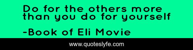 "Book of Eli Movie Quotes." Quoteslyfe.com, 2025. Fri. 05 Dec. 2025. <https://www.quoteslyfe.com/quote/Do-for-the-others-more-than-you-105642>.