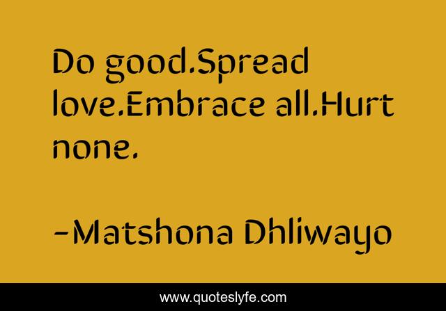 "Matshona Dhliwayo Quotes." Quoteslyfe.com, 2025. Mon. 08 Dec. 2025. <https://www.quoteslyfe.com/quote/Do-good-Spread-love-Embrace-all-Hurt-98449>.