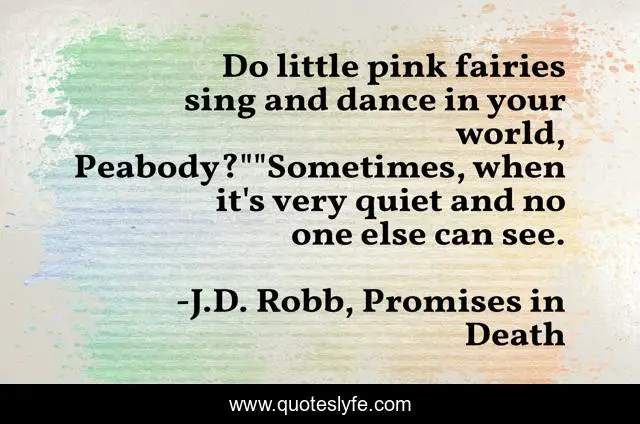 This page presents the quote "Do little pink fairies sing and dance in your world, Peabody?""Sometimes, when it's very quiet and no one else can see.". Author of this quote is J.D. Robb, Promises in Death. .