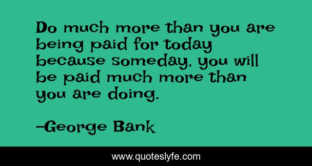 This page presents the quote "Do much more than you are being paid for today because someday, you will be paid much more than you are doing.". Author of this quote is George Bank. .