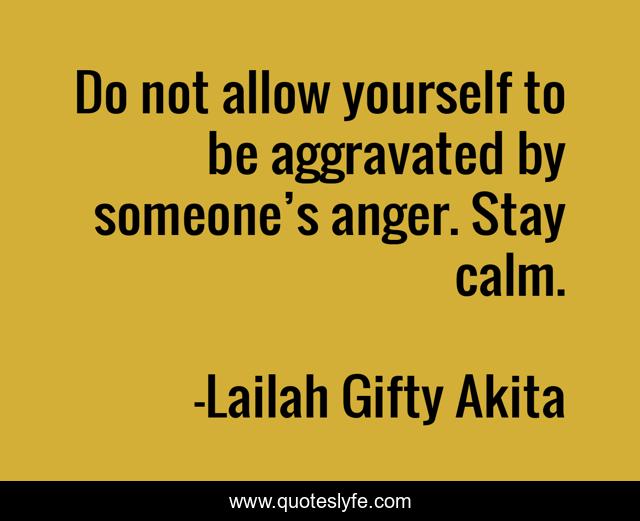 This page presents the quote "Do not allow yourself to be aggravated by someone’s anger. Stay calm.". Author of this quote is Lailah Gifty Akita. This quote is about anger, calm, inner-peace,.