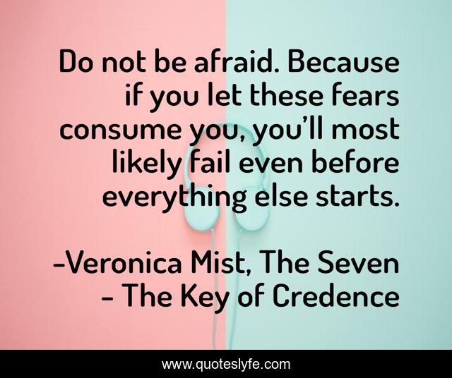 This page presents the quote "Do not be afraid. Because if you let these fears consume you, you’ll most likely fail even before everything else starts.". Author of this quote is Veronica Mist, The Seven - The Key of Credence. This quote is about cowardice, enthusiasm, courage, inspirational,.