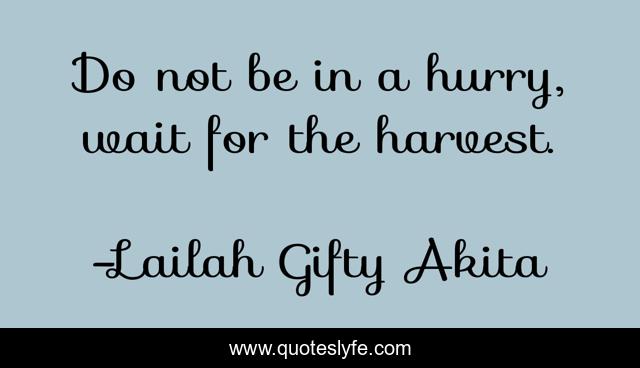 This page presents the quote "Do not be in a hurry, wait for the harvest.". Author of this quote is Lailah Gifty Akita. This quote is about patience, endurance, plant-a-seed, waiting,.