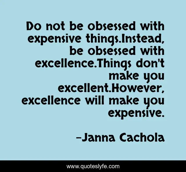 This page presents the quote "Do not be obsessed with expensive things.Instead, be obsessed with excellence.Things don't make you excellent.However, excellence will make you expensive.". Author of this quote is Janna Cachola. This quote is about motivation, service-excellence-excellence, leaders, lead, greatness, team-spirit, mission, thought, power-women,.