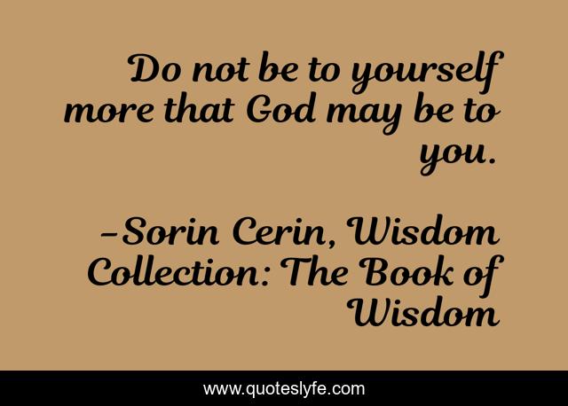 This page presents the quote "Do not be to yourself more that God may be to you.". Author of this quote is Sorin Cerin, Wisdom Collection: The Book of Wisdom. .