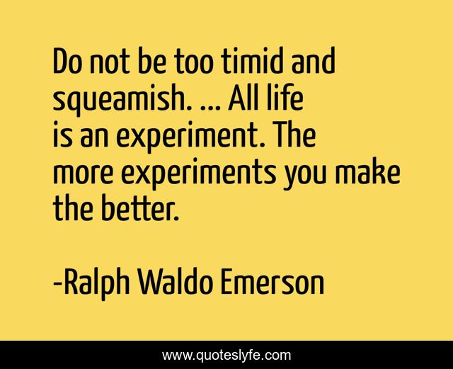 This page presents the quote "Do not be too timid and squeamish. ... All life is an experiment. The more experiments you make the better.". Author of this quote is Ralph Waldo Emerson. .