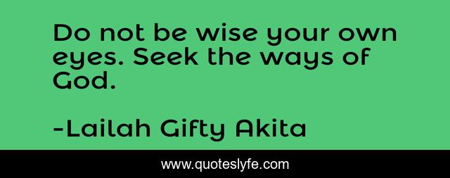 This page presents the quote "Do not be wise your own eyes. Seek the ways of God.". Author of this quote is Lailah Gifty Akita. This quote is about christian, ways, god, wise, inspirational, self-help, ask, enthusiasm, seek,.