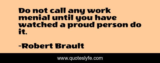 This page presents the quote "Do not call any work menial until you have watched a proud person do it.". Author of this quote is Robert Brault. This quote is about work, menial, proud,.