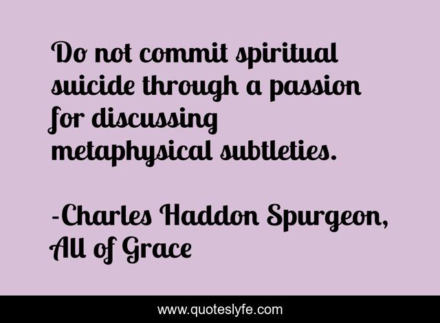 This page presents the quote "Do not commit spiritual suicide through a passion for discussing metaphysical subtleties.". Author of this quote is Charles Haddon Spurgeon, All of Grace. This quote is about philosophy, metaphysics, christianity,.