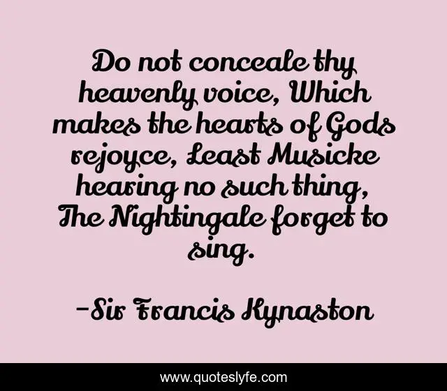 "Sir Francis Kynaston Quotes." Quoteslyfe.com, 2025. Sun. 07 Dec. 2025. <https://www.quoteslyfe.com/quote/Do-not-conceale-thy-heavenly-voice-Which-61077>.