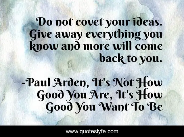 "Paul Arden, It's Not How Good You Are, It's How Good You Want To Be Quotes." Quoteslyfe.com, 2025. Sat. 06 Dec. 2025. <https://www.quoteslyfe.com/quote/Do-not-covet-your-ideas-Give-away-205187>.