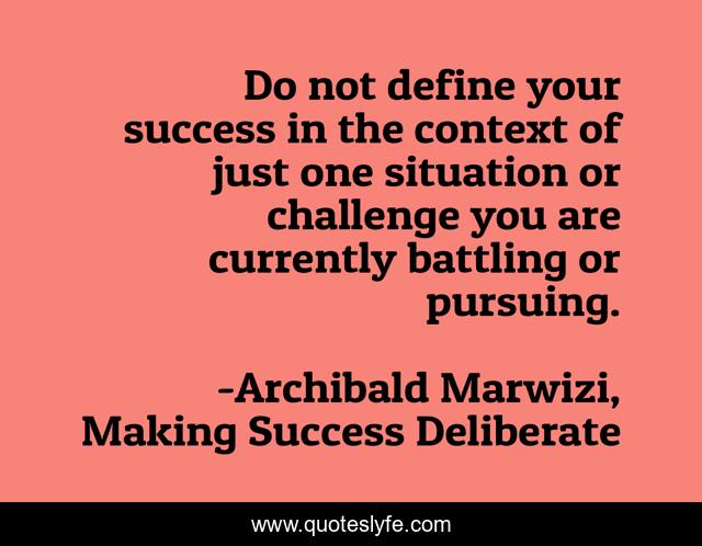 This page presents the quote "Do not define your success in the context of just one situation or challenge you are currently battling or pursuing.". Author of this quote is Archibald Marwizi, Making Success Deliberate. This quote is about life, success, behaviour, attitude, legacy, growth, purpose, inspirational, leadership,.
