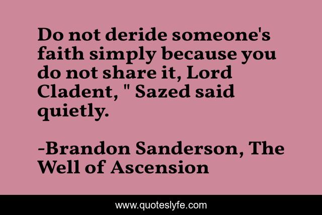 "Brandon Sanderson, The Well of Ascension Quotes." Quoteslyfe.com, 2025. Sat. 06 Dec. 2025. <https://www.quoteslyfe.com/quote/Do-not-deride-someone-s-faith-simply-254996>.