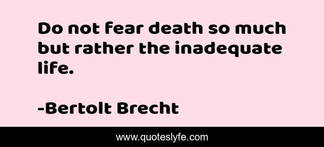 This page presents the quote "Do not fear death so much but rather the inadequate life.". Author of this quote is Bertolt Brecht. This quote is about inadequate, life, fear,.