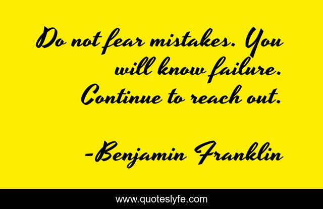 This page presents the quote "Do not fear mistakes. You will know failure. Continue to reach out.". Author of this quote is Benjamin Franklin. This quote is about fear, mistakes,.