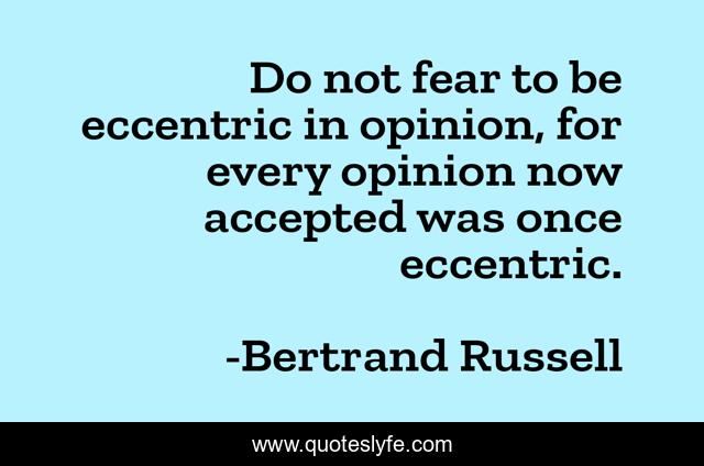 This page presents the quote "Do not fear to be eccentric in opinion, for every opinion now accepted was once eccentric.". Author of this quote is Bertrand Russell. This quote is about eccentricity, confidence, philosophy,.