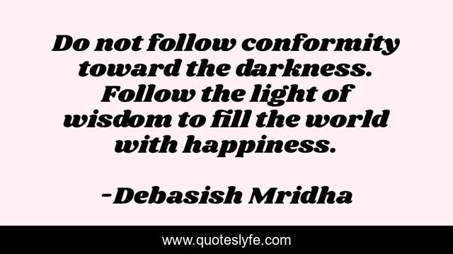 This page presents the quote "Do not follow conformity toward the darkness. Follow the light of wisdom to fill the world with happiness.". Author of this quote is Debasish Mridha. This quote is about debasish, mridha, philosophy, debasish-mridha, wisdom, inspirational, enthusiasm, conformity, happiness,.