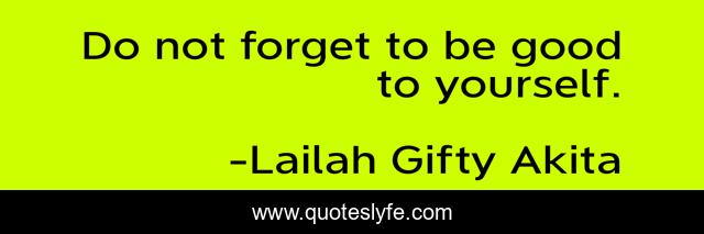 This page presents the quote "Do not forget to be good to yourself.". Author of this quote is Lailah Gifty Akita. This quote is about life, good, self-love, encouragement,.