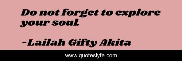 This page presents the quote "Do not forget to explore your soul.". Author of this quote is Lailah Gifty Akita. This quote is about spirituality, wise-words, love, soul, affection,.