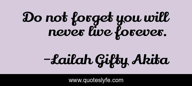This page presents the quote "Do not forget you will never live forever.". Author of this quote is Lailah Gifty Akita. This quote is about living, life, death, wisdom,.