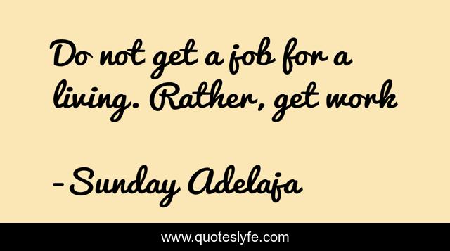 This page presents the quote "Do not get a job for a living. Rather, get work". Author of this quote is Sunday Adelaja. This quote is about life, blessing, finance, money, work, job, joblessness, purpose, time,.