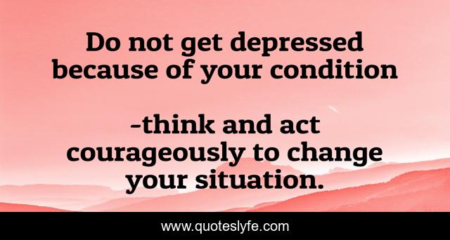 This page presents the quote "Do not get depressed because of your condition". Author of this quote is think and act courageously to change your situation.. .