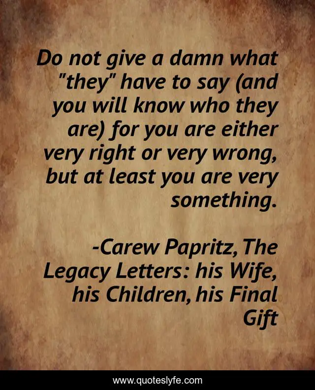 "Carew Papritz, The Legacy Letters: his Wife, his Children, his Final Gift Quotes." Quoteslyfe.com, 2025. Sat. 06 Dec. 2025. <https://www.quoteslyfe.com/quote/Do-not-give-a-damn-what-they-90868>.